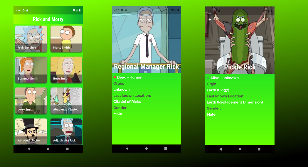 This is an application that uses an API to get the characters from Rick and Morty and their details using the provider package. Click here to view the source code.