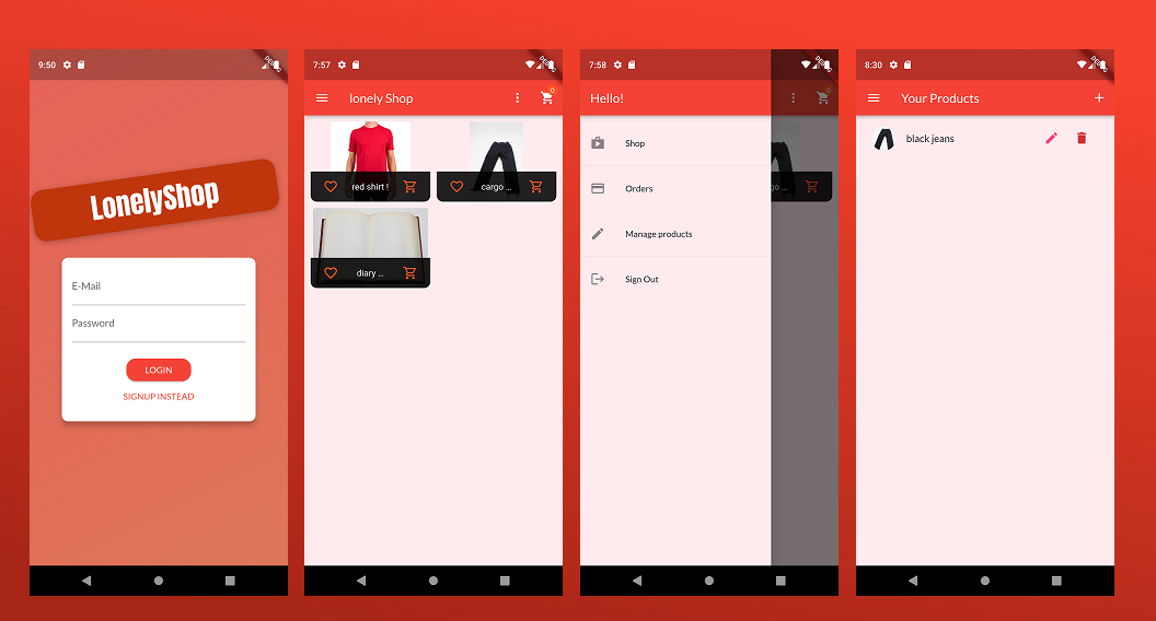 This is an online shop application where users can log in and view products and their details add them to their cart and checkout, as well as add their products, and manage them. Using Firebase real-time database, Firebase Auth REST API. Provider package for state management. Click here to view the source code.